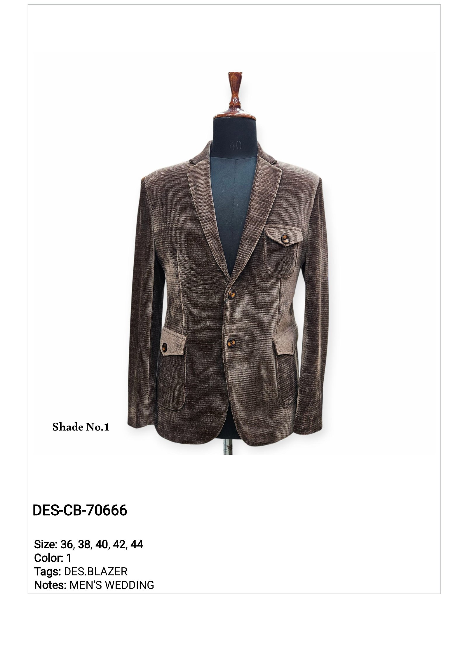 Enhance your premium wedding collection with the stylish DES-CB-70666 Blazer by Mens Wedding, a trusted men’s wedding blazer wholesaler in Delhi. This design is specially curated for grooms, reception events, engagement ceremonies, cocktail parties, and formal wedding occasions. It blends elegant craftsmanship with a rich textured finish, making it a perfect choice for modern wedding wear collections.